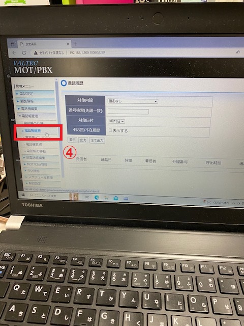 ④「電話帳管理」 → 「電話帳編集」 を押します。