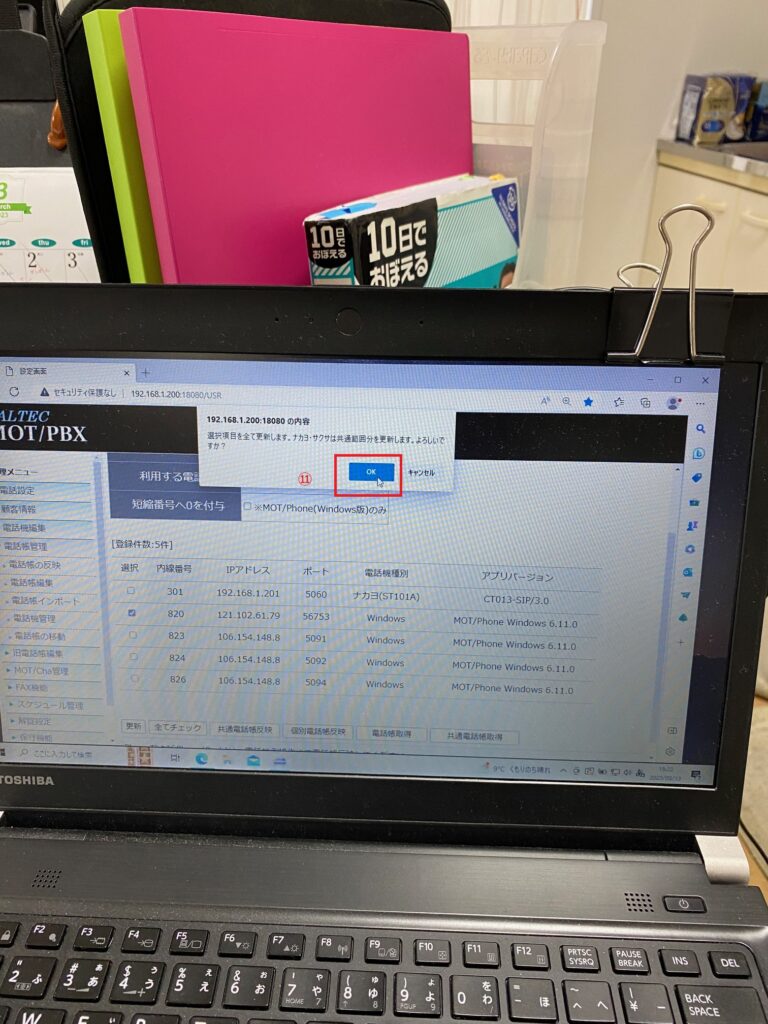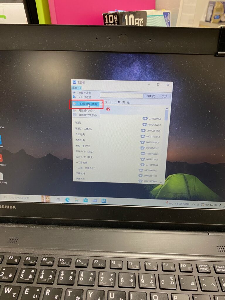 ⑮「PBX電話帳を同期」 を押します。