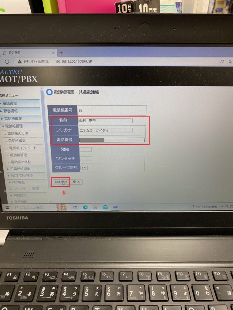 ⑥赤枠の部分を記入し、「設定保存」を押します。