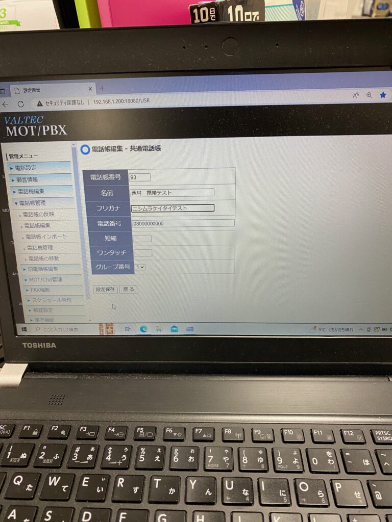 (ここでは例として西村 携帯テストを新規登録します。)