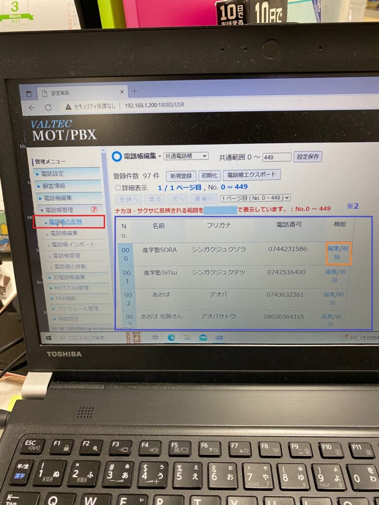 ⑦新規登録・編集・削除いずれかを行った電話番号を電話帳に反映させるためには