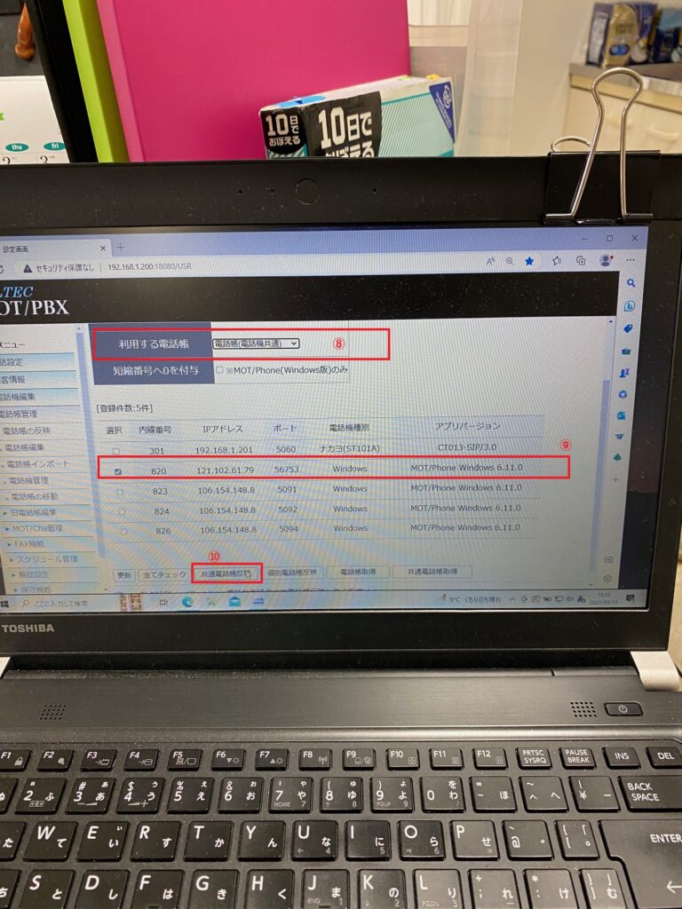 ⑩「共通電話帳反映」を押します。