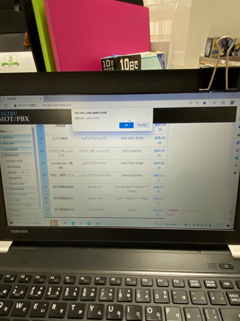 削除の場合はこんな画面になるので、消して大丈夫なら「OK」のボタンを押します。